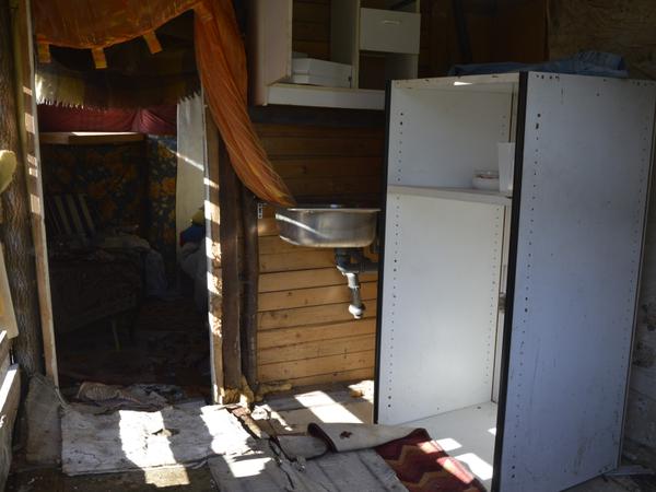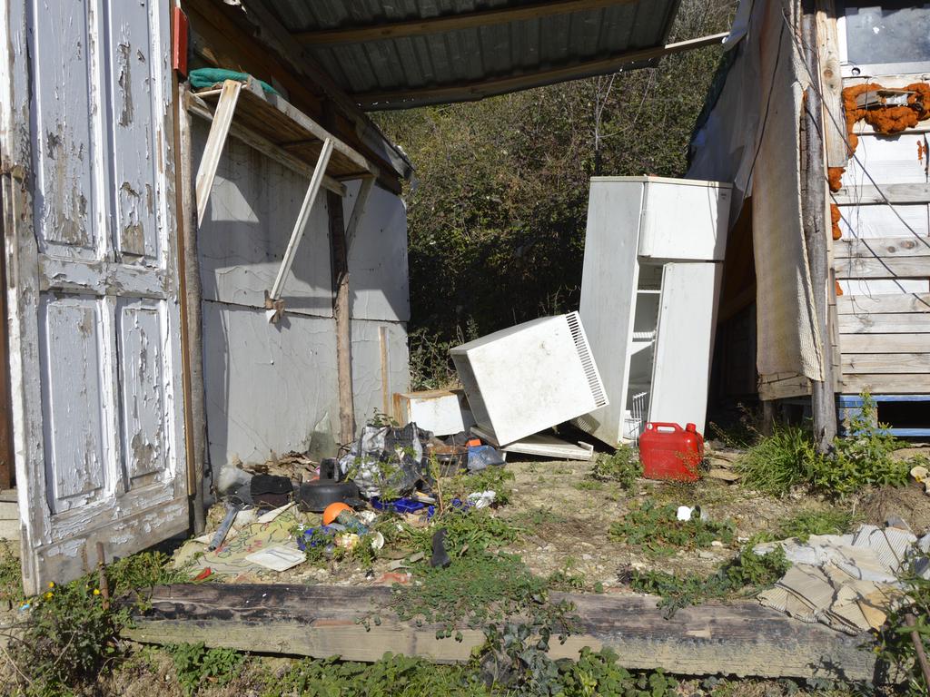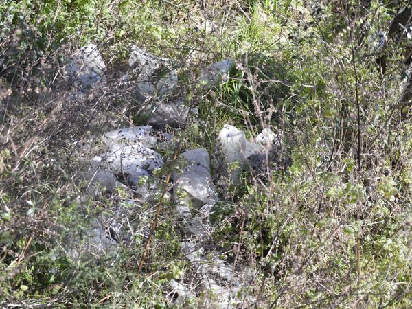 Arriviamo in prossimità di un tratto del percorso che, mi viene spiegato, è gravemente inquinato da due tipi di rifiuti: materiale edile abbandonato, e una piccola baraccopoli, ora deserta, in cui i rifiuti la fanno da padrone. Residui di recinzioni, materiale plastico e le classiche reti rosse da cantiere non si fanno attendere, e fanno capolino dalla vegetazione, che inarrestabile le sta man mano inglobando. Ma ben più grave è lo spettacolo che troviamo al nucleo di baracche, la cui condizione, ci avevano anticipato Antonietta e Fausto costituisce un problema, anche igienico. Va sottolineato come la passata convivenza fra i residenti del quartiere e gli abitanti di questo piccolo villaggio abusivo non sia stata per nulla facile, ma ora che se ne sono andati, almeno a quanto sembra e a quanto i nostri accompagnatori ci riferiscono, i problemi non sono finiti: esiste infatti un seria necessità di bonificare il posto. “L’eco-villaggio”, come lo chiama Antonietta in maniera simpaticamente ossimorica, sorge lungo il tracciato dell’acquedotto, in prossimità di un rudere con le porte murate e senza tetto, adibito ad enorme cassonetto della spazzatura: l’edificio è infatti stato riempito di rifiuti di ogni genere, che per altro giacciono anche sparpagliati a terra tutto intorno. Le baracche sono una quindicina, tutte almeno apparentemente prive di inquilini abituali. La varietà ed il numero di oggetti, rotti e non, sparsi al suolo è piuttosto impressionante: si va dalla lavatrice, al passeggino fino al tostapane, si tratta ormai di una discarica abusiva. Dovrebbe essere inutile sottolineare la necessità di bonificare una simile situazione in posto così bello e prezioso intrinsecamente e grazie alla presenza di un bene di alto valore storico. Guardando con attenzione si può anche notare amche che alcune lastre di copertura dell’acquedotto sono state utilizzate come elemento costitutivo di queste improvvisate abitazioni.