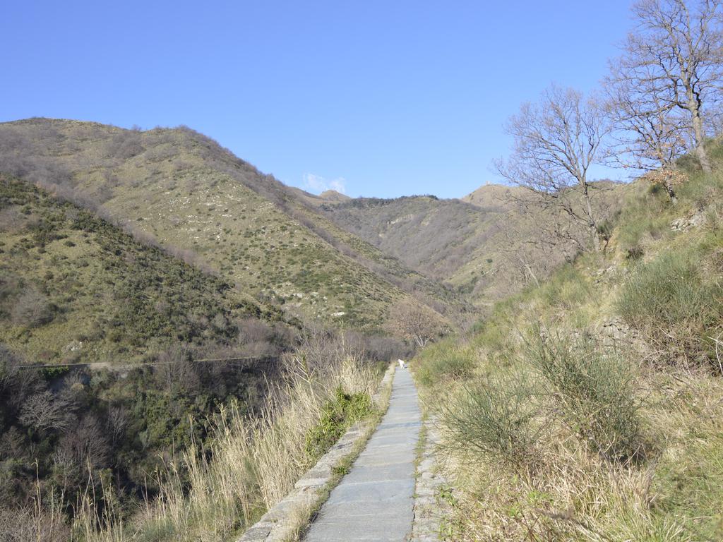 Incontriamo quasi subito una prima sezione dell’acquedotto la cui copertura in lastre di pietra è mancante: «In questo caso – sottolinea Antonietta – chi di dovere ha pensato bene di installare un paio di ringhiere e fare di fianco una gettata di ghiaia, non sarebbe stato più opportuno ripristinare le pietre a chiusura della condotta?» Mentre seguiamo il percorso dell’acquedotto Antonietta racconta che  «Da sempre è noto che questa zona è soggetta a frane e smottamenti, infatti in diversi punti è ancora oggi possibile apprezzare sdoppiamenti del condotto, frutto della sovrapposizione di diversi lavori di ripristino effettuati negli anni, almeno fino a quando l’acquedotto aveva un’importanza centrale perché veniva usato. Poi mano a mano è stata interrotta la manutenzione e ad ogni alluvione ci sono nuovi cedimenti e crolli».