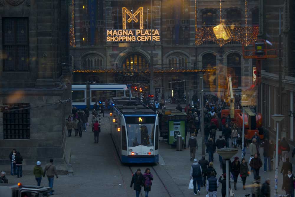 Tutto ruota intorno a piazza Dam, un grande obelisco dalla forma fallica padroneggia nel centro, intorno centinaia di biciclette passano a velocità sostenuta non curandosi della strada umida e delle viscide rotaie dei tram.