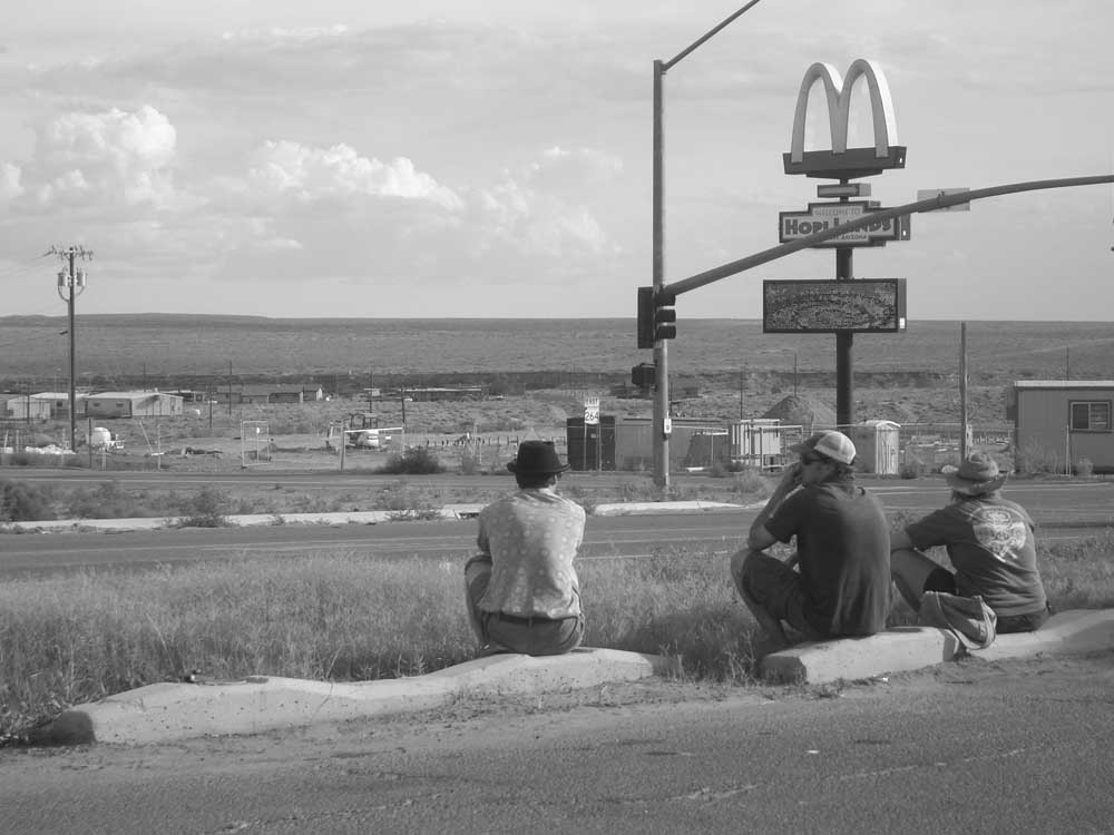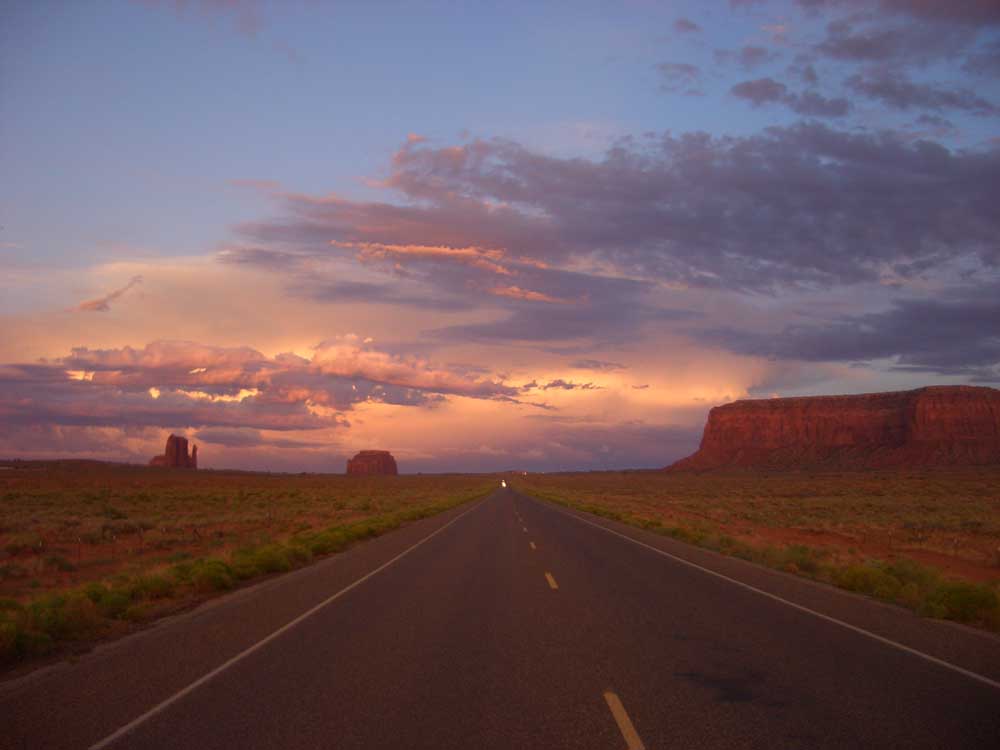 monument-valley-DIFermo in una stazione di servizio lungo la statale 160 che taglia l’Arizona ho preso il portafogli e una banconota da cinquanta dollari raffigurante il presidente Grant che ha riempito il serbatoio della benzina. Ho posato la pompa notando la scritta sul display recante “Dio benedica i nostri soldati in Iraq” e sono entrato nello shop per bere e rinfrescarmi.
