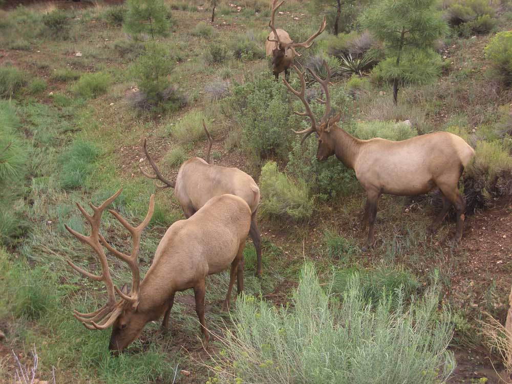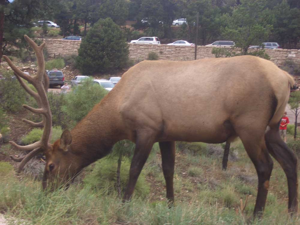 La notte era passata tranquilla, dopo colazione siamo usciti e ci siamo imbattuti in alcuni cervi che pascolavano nei pressi della nostra macchina, vicino a loro il ranger cercava di allontanarli, la loro mole li rendeva pericolosi e abbiamo dovuto attendere qualche minuto. Il sentiero per scendere il canyon iniziava con una stradina sterrata di terra rossa, si poteva scegliere se usare il mulo oppure camminare a proprio rischio e pericolo.