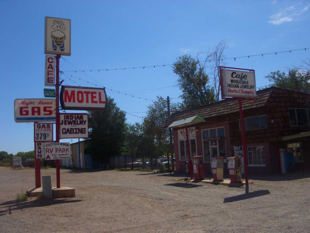 Teschi appesi e animali impagliati uniti a juke box e poltrone di pelle rossa creavano un mix tra saloon western e locale alla Arnold’s di Happy Days, ci hanno servito pancake e uova strapazzate, una tazza di caffè latte e una spremuta d’arancia, assistendo comodamente all’arrivo di un elicottero che è atterrato di fronte al nostro motel creando una grossa nube di polvere. Dalla camera a fianco alla nostra è uscito un uomo in fin di vita, non sappiamo cosa sia accaduto, probabilmente un malore, ma essendo in America è bello pensare a qualcosa in stile cinematografico.