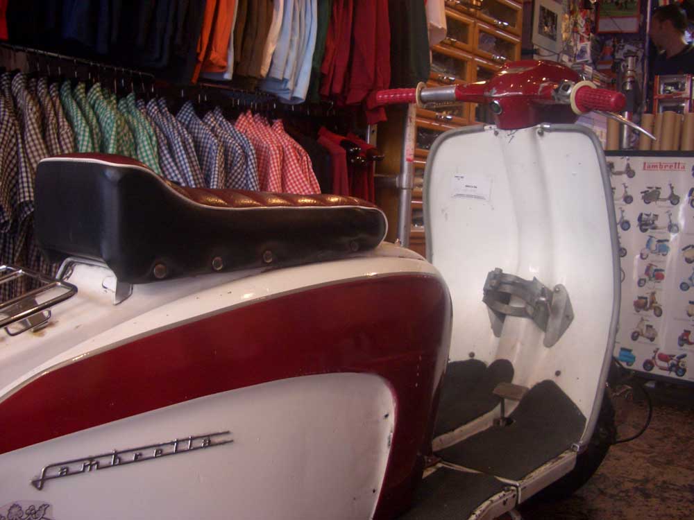 Il secondo giorno lo abbiamo dedicato allo shopping, molti negozi del centro vendono abbigliamento come camicie a maniche corte, parka, scarpe con le frange e spille di ogni colore e motti, tipici dello stile Mod. Uno di questi esponeva al suo interno una Lambretta d’epoca e fotografie di  cantanti e personaggi famosi come Paul Mc Cartney, Paul Weller, Rod Stewart e Liam Gallagher, che avevano visitato il negozio e immortalati al suo interno.