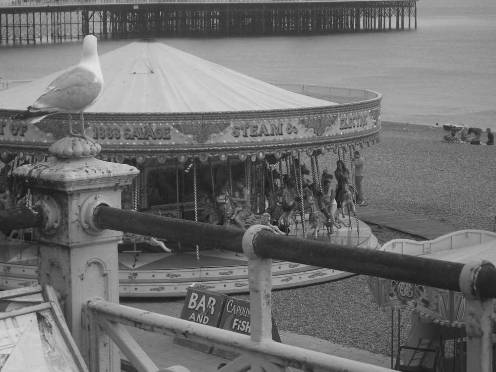 La prima sera siamo andati al luna park del Palace Pier e ci siamo divertiti come bambini sopra le montagne russe e su gli autoscontri, l’attrazione della serata però è stato Paul, un Bulldog di peluche rinchiuso in una teca di vetro, sarebbe stata sufficiente una sterlina e un po’ di fortuna nel manovrare il braccio meccanico per permettergli di evadere… ma le sterline sono state venti e dopo quasi un ora di tentativi lo presi e lo portai con me per tutta la vacanza.