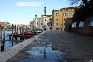 Il vento, spazzate via le ultime nuvole, gonfiava i tendoni del mercato appena chiuso come vele di una nave, piccioni e gabbiani, intenti a rubare avanzi prima dell’arrivo dello spazzino con l’idrante, arrivavano a frotte, atterrando sul molo come su una pista di aeroporto. Piccole barche attraccate sui portoni delle case ondeggiavano sinuose, sui muri i segni delle maree sfumavano in colori sempre diversi, le imposte consumate dall’umidita si aprivano come gli occhi dopo un risveglio e un bambino uscito dalla finestra per curiosare salutava i passanti. Seguivo i cartelli sbiaditi dal tempo con le frecce che indicavano il percorso per piazza san marco, la città era affollata da centinaia di turisti da ogni parte del mondo, quella sera ci sarebbe stata la festa del Redentore e lungo i canali fervevano i preparativi.