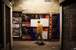 Camminando mi sono sentito chiamare da un tunnel, una donna con un fazzoletto lilla in capo mi sorrideva esortandomi a uscire dalla folla e avvicinarmi. Con sospetto sono entrato in quel tunnel umido e buio, ricoperto di vecchi poster e manifesti ingialliti, la donna mi guardava con occhi buoni, sosteneva di aver sentito il mio animo caritatevole in mezzo alla folla. Sapevo essere un modo elegante per scucire qualche spicciolo, ma i suoi occhi trasmettevano bontà mista a paura, parlava poco l’italiano, tuttavia mi ha raccontato la sua vita con gli occhi pieni di commozione. Scappata dalla Siria dopo la morte del marito, con il figlio in braccio aveva superato le frontiere clandestinamente e dalla Turchia, in circostanze poco chiare, era arrivata in Italia. Nel suo paese aveva una dignità, cuciva e riparava abiti, lavorava e possedeva una casa, ora distrutta come il suo morale. Con una morsa al cuore le ho lasciato dei soldi, una bottiglia d’acqua e una mela, lei mi ha preso la mano ed è scoppiata a piangere, segno inequivocabile della realtà che stava vivendo.