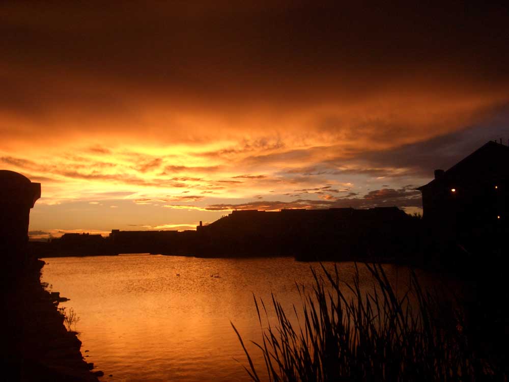 Proseguimmo in direzione di Thurso, il paese più a Nord della Scozia, nel tragitto non trovammo abitazioni, solo verde, pioggia e capre in libertà. Giunti in paese trovammo uno splendido B&B proprio davanti alla spiaggia, una distesa di sabbia talmente fine da far invidiare alcuni posti tropicali dove alcuni bambini giocavano con l’aquilone e una coppia raccoglieva conchiglie. Ci recammo prima nel porticciolo per cercare gli orari dei traghetti per le Isole Orcadi, e poi in centro poiché fino al mattino seguente non c’erano imbarcazioni disponibili. Il centro di Thurso pareva vuoto, calmo, pochi pub, un negozio di dischi e qualche attività aperta, a mio modo di vedere molto rilassante e piacevole. Trovammo una splendida giornata di sole e ce la godemmo fino a tarda sera, passeggiando, fotografando particolari e giocando a pallone in spiaggia, fino a quando il giorno volse al termine e il sole abbandonò la scena lasciando il posto ad uno splendido tramonto. La sera mangiammo in un pub e verso mezzanotte tutto il paese si popolò di gente, feste in maschera, addii al celibato e gruppi di ragazze che vagano per le vie in cerca di qualcosa da bere.