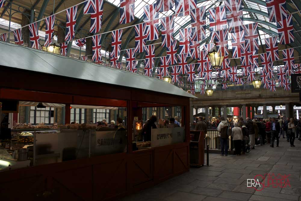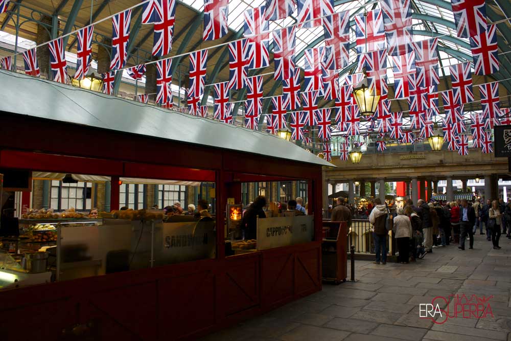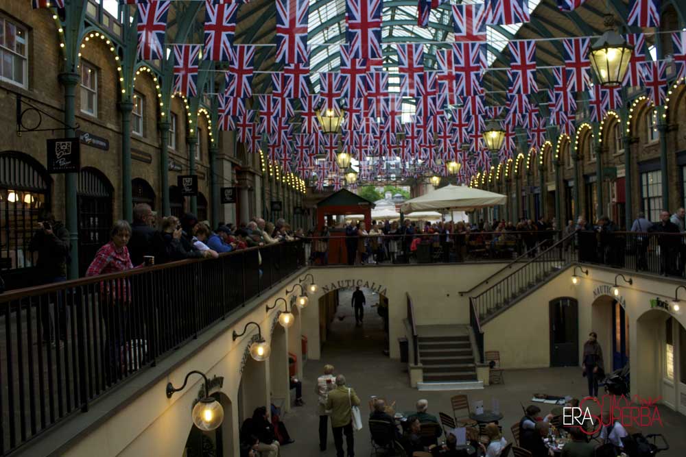 Adiacente a Fortnum & Mason troviamo la piccola chiesa di St.James, nel cui cortile viene esposto un piccolo mercato di merce usata e di produzione artigianale, facile da visitare per la sua comodità, utile per staccare la vista dalle grandi firme del centro cittadino. Sempre tenendo come punto di riferimento Piccadilly circus e attraversando Leicester Square con i suoi cinema e ticket office e proseguendo verso ovest percorrendo New Row, non ci si può non imbattere in Covent Garden. Situato nel west end della città, costituisce il raccordo tra lo Strand e la zona centrale Charing Cross Road. Nato dalle ceneri di un antico orto di un convento di frati, dal quale prende il nome, si è trasformato nel tempo in mercato ortofrutticolo per poi diventare il luogo più turistico di Londra dopo Piccadilly Circus. Al suo interno si trovano negozi di abbigliamento e ristoranti dai quali è possibile assistere comodamente seduti agli spettacoli degli artisti di strada che si esibiscono da ogni parte del mondo.