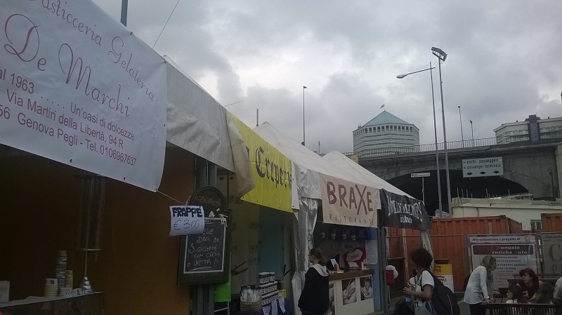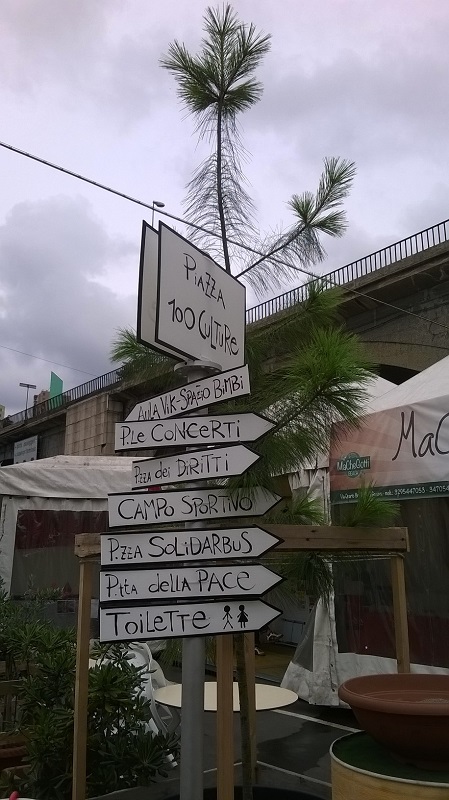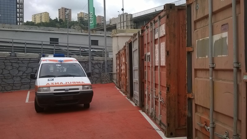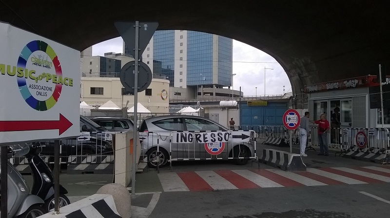 «È una scelta molto dura, anche se abbiamo aiuti: ad esempio, abbiamo deciso di pagare l’affitto di questo spazio che occupiamo a San Benigno, di proprietà dell’Autorità Portuale, ma abbiamo un canone agevolato al 90% stabilito dal Demanio. Quando siamo arrivati qui, molti di noi erano disperati: non c’era nemmeno l’asfalto, non c’era niente. Abbiamo fatto tutto da soli, grazie al lavoro dei volontari: qui non è mai entrata una ditta esterna, a meno che non fosse partner. Per il resto, abbiamo asfaltato, costruito il campetto aperto e gratuito tutto l’anno, il magazzino, gli infissi, le aule e i locali che usiamo per le nostre attività durante tutto l’anno. Non c’era nemmeno l’elettricità. Fino a 4 anni fa non avevamo una sede, solo un piccolo ufficio a Borgoratti 2 metri per 2, e ci appoggiavamo al VTE per il trasporto delle merci: la logistica non era delle migliori, ma abbiamo realizzato lo stesso oltre 20 missioni. Poi finalmente siamo arrivati qui, e anche se il lavoro è stato duro eravamo felici. Ora riceviamo, per fortuna, contributi da enti pubblici e privati, da sponsor, istituzioni e media partner, con i quali c’è un rapporto di cambio merci. Per esempio, da dieci anni collaboriamo con il gruppo Messina, che mette a nostra disposizione container per le missioni ed effettuano il trasporto fino al porto più vicino. Tutto quello che vedete qui è “spazzatura”, materiale di recupero: i tavoli vengono da una vecchia nave di Costa Crociere, poi ci sono pallet, una vecchia libreria che fino a qualche anno fa era al Palazzo della Borsa, parti recuperate dal mercato di Via Bologna. Le piante sono state donate da un commercialista e da un vivaio di Savona. Anche la copertura del palco è stata donata dal nostro sponsor, la birra DAB. E soprattutto: gli artisti si esibiscono gratuitamente e non percepiscono nemmeno un rimborso per il viaggio (alcuni vengono dalla Calabria o dalla Lombardia, per esempio)».
