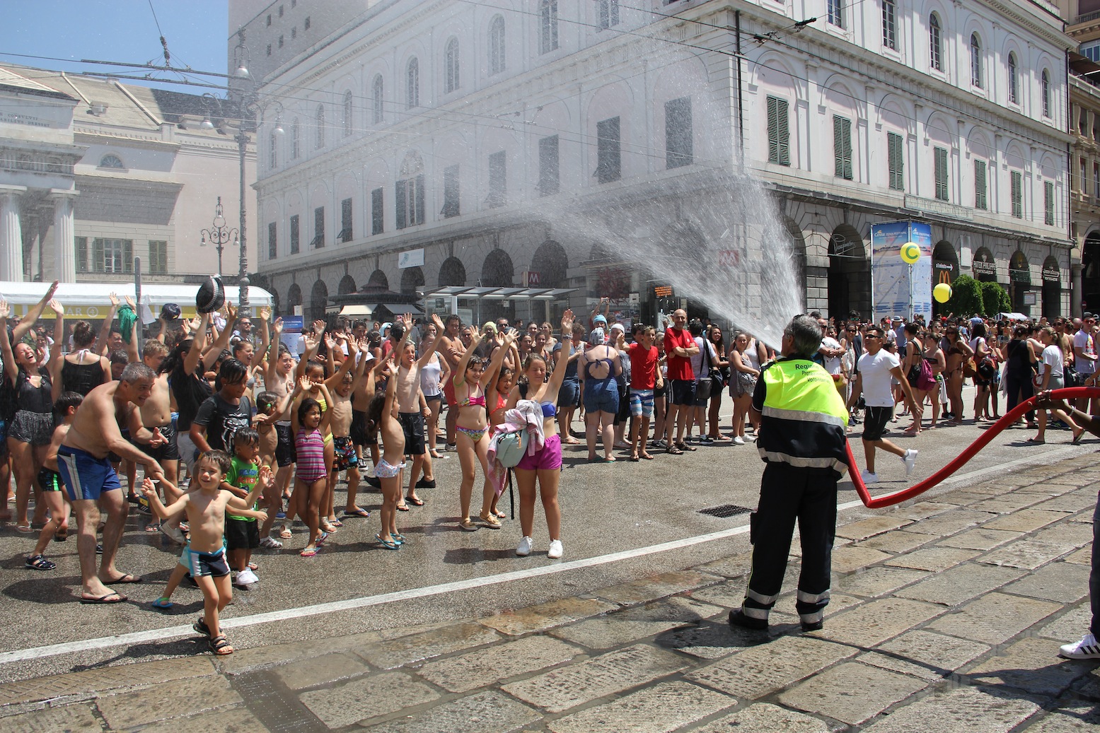 E quindi dove sta il problema? Nella testa dei genovesi e nei colori delle cose. E anche nel valore economico, o meglio, nel volume “del grano” degli attori in commedia. Il “barbone” che si lava nella fontanella è degrado, gli idranti a De Ferrari per rinfrescare la folla è divertimento e marketing territoriale. Il povero fa brutto, e lo straniero dalla pelle scura pure (e spesso le cose vanno insieme), il popolo in coda per il “circo” offerto sua grazia dal mega sponsor di turno fa “finalmente succede qualcosa a Genova”.