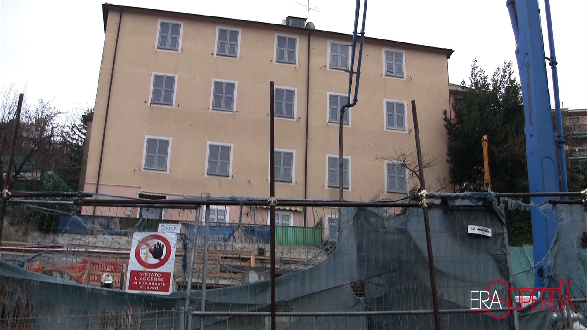A distanza di una decina di metri dall’edificio lesionato di via Bocciardo 1, nel tratto di strada privata che si affaccia sull’enorme voragine dell’area a sud del cantiere, si trovano i civici n. 66A-66B-66C-68-68A di via Tanini. Decine di famiglie sono preoccupate perché una situazione di incipiente dissesto e pericolo sta interessando anche la strada di accesso alle loro abitazioni.