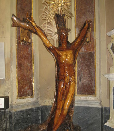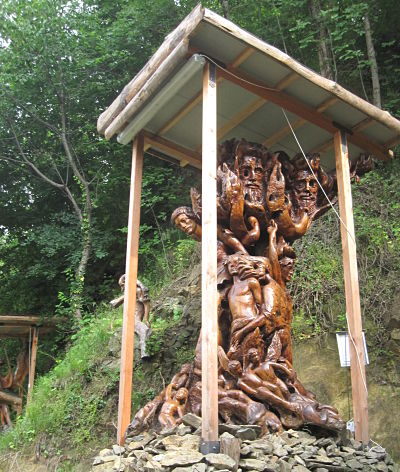 Il dio fabbro, Efesto, che foggia lo scudo mirabile di Achille, lo sfortunato Icaro, pronto a spiccare il tragico volo da Cnosso, la bella Diana, inseguita dall’innamorato Apollo, il tetro Caronte, traghettatore di anime, accompagnano il visitatore nel primo tratto di salita verso la rocca che, oggi, ospita una bella rappresentazione meccanizzata della fiaba di Pinocchio.